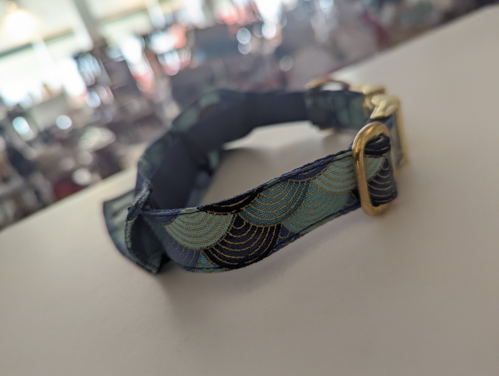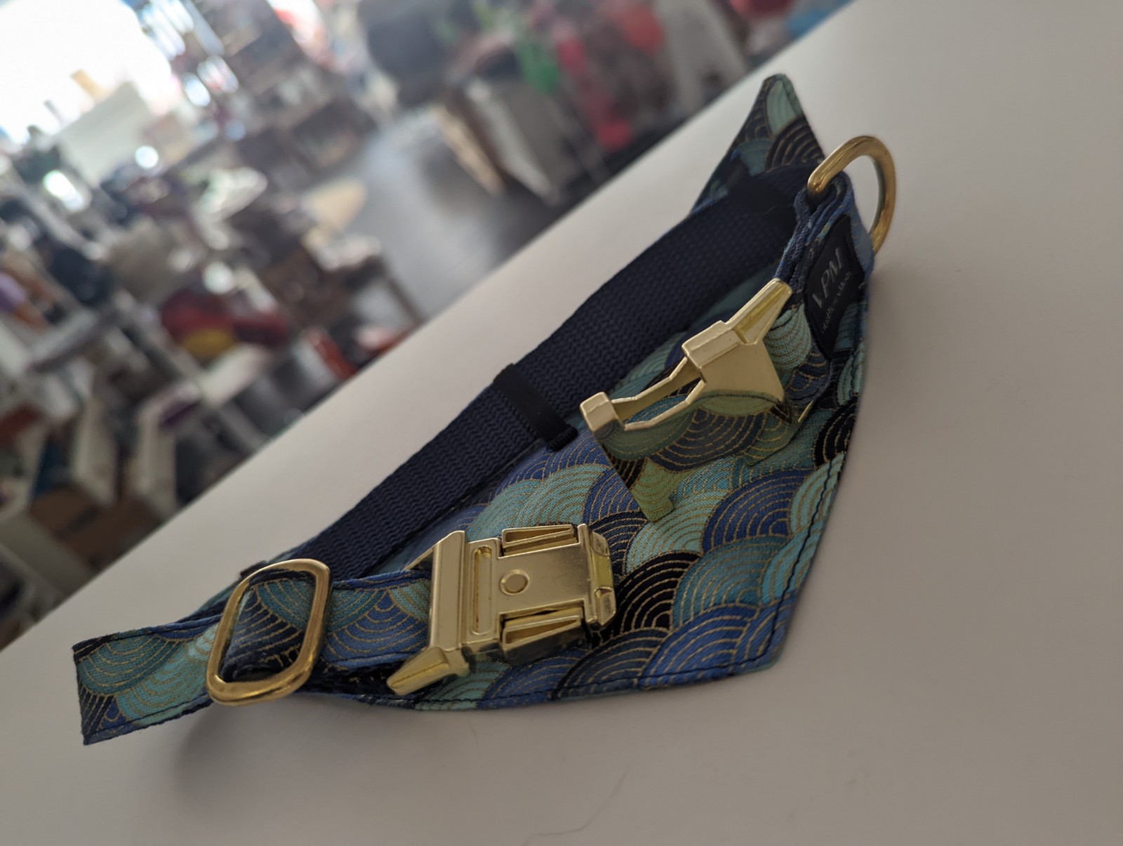 2in1 Regenbogen blau/gold Halsband mit (abnehmbarem) Halstuch (S)