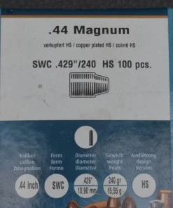 44 Magnum von Haendler & Natermann 100 HS Geschosse, Semi-Wadcutter 15,55g/240gr, zum Sonderpreis