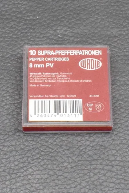 Supra Pfefferpatronen Abwehrpatronen Wadie Kaliber 8 mm PV für Pistolen 45 mg Wirkstoff