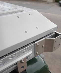 Für die Montage der 270° Markise an einem Alu-Cab Dachzelt benötigt man dieses Halterungs-Set. Die Produkte sind ideal aufeinander abgestimmt. Somit ist eine einfache Montage und ein gleichmäßiger Abstand zwischen Dachzelt und Markise gewährleistet. Die Edelstahl Halterungen werden vorne und hinten direkt am Dachzelt befestigt. Hierzu müssen Bohrungen am Dachzelt vorgenommen werden. Die Halterungen werden mittels M8-Schrauben und Konterplatten befestigt.