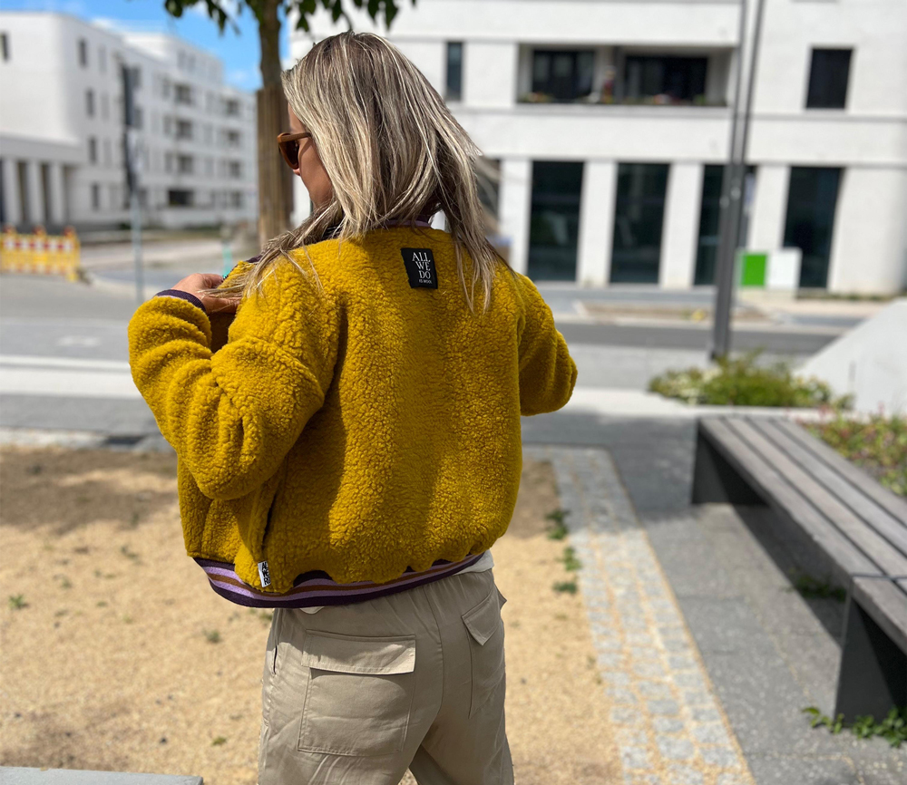 - ULTRALEICHTE WOLLE 100 % Wolle in einem Fleece mit Schaffellstruktur und einer sehr leichten Formel. Der Stoff zeichnet sich durch außergewöhnliche Weichheit und Elastizität aus, wodurch er uns sanft umhüllt. Charakteristisch für dieses Material ist seine schwarze Basis, die die Farbe des verwendeten Wollvlieses intensiv zur Geltung bringt.