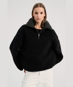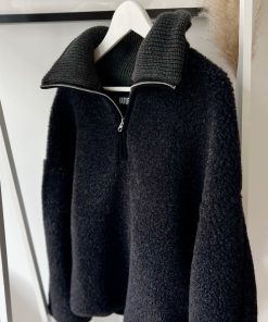 - Hoher, gerippter Baumwollekragen auf der Innenseite