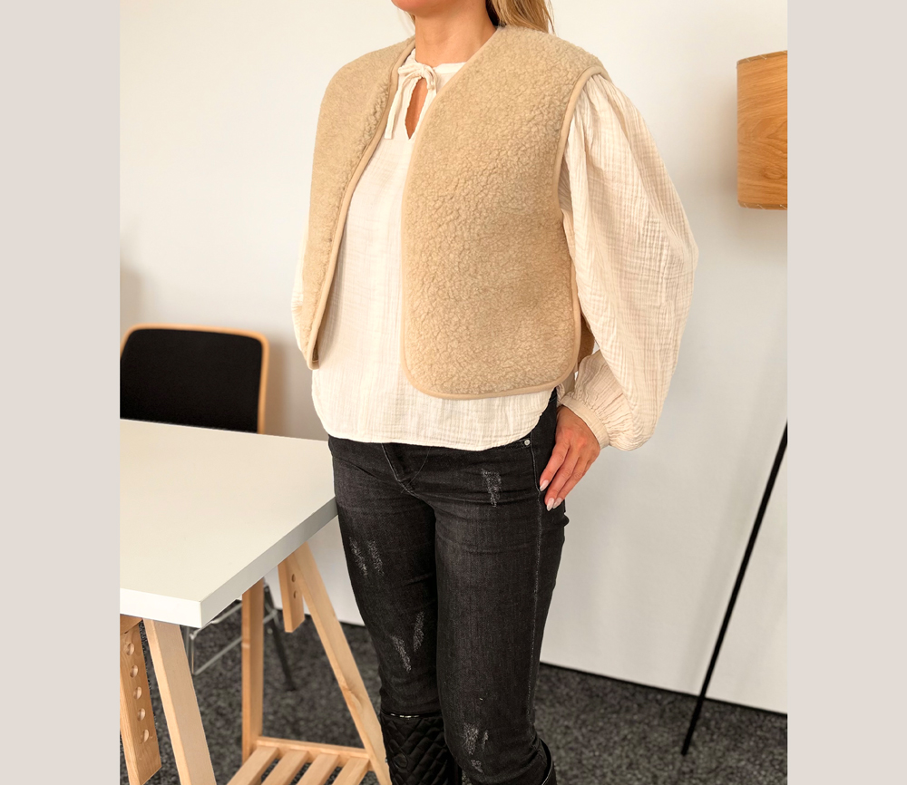 - ULTRALEICHTE WOLLE 100 % Wolle in einem Fleece mit Schaffellstruktur und einer sehr leichten Formel. Der Stoff zeichnet sich durch außergewöhnliche Weichheit und Elastizität aus, wodurch er uns sanft umhüllt. Charakteristisch für dieses Material ist seine schwarze Basis, die die Farbe des verwendeten Wollvlieses intensiv zur Geltung bringt.