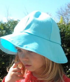 Eine hochwertige Baumwolle, leicht elastisch. Dieser Stoff ist besonders gut für Hosen, Röcke, Mützen und vieles mehr. Abbildung Sommerhut Rebecca in Farbe Türkis. Hose Paul_a und Rock aus unserem Rockbuch in Marine und Hose Matteo in Hellgrau.
