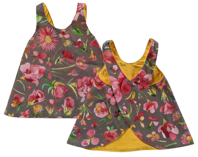 Dieser Canvasstoff aus Baumwolle besitzt eine schöne Festigkeit und kann sehr gut für Taschen, Hosen, Kissen und vieles mehr verarbeitet werden. Abbildung diverser Schnittmuster zur Inspiration. Abbildung Schnittmuster Berit und Flora, Wendekleid, Kittelkleid, Schürzenkleid in andere Musterung aber gleicher Qualität.