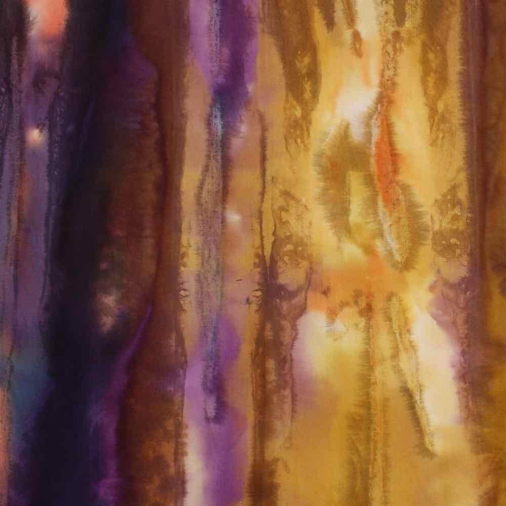 Baumwollstoff, Farbverlauf Lila Gelb – handgebatikt!