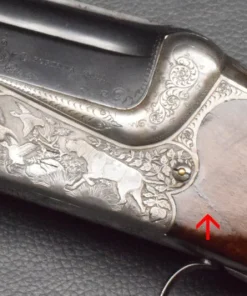 Läufe sehr gut, Brünierung 97%, Schaft leider mit Hinterschaft Riss geklebt (Foto)