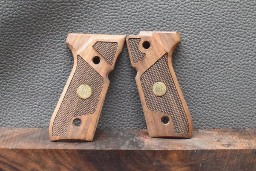 Beretta Mod.92FS, Motiv gestreifte Oberfläche mit PB Logo Messing, Walnuss, Neuware zum Sonderpreis!