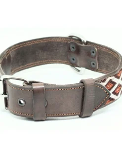 Echtleder Halsband in Kombination mit resistenten bunten Nylonfäden.