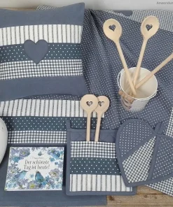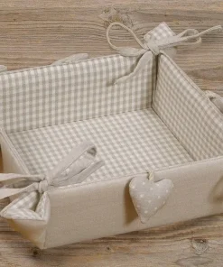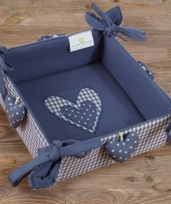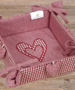 • Hübsche Brotkörbe zum Binden – Stoffmix uni kariert, Herz-Applikation & kleine Herz-Anhänger – trendiger Landhaus-Stil – Serie LINA