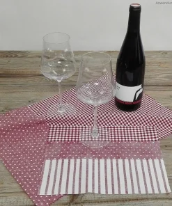 • Erhältlich in 3 Farben: beige weiß, rot weiß & blau weiß / Größe: 20×20 cm zum Binden