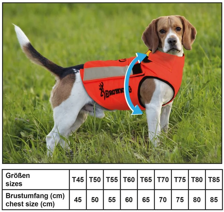 Wichtig: Der Brustumfang entscheidet über die Größe, daher den Umfang genau messen. Das Maßband darf die Hundehaare nur leicht berühren. Bitte NIE eine zu große Größe wählen. Das erzeugt schmerzhafte Reibung im Bereich der Vorderbeine. Hals- und Bauchbereich sind mit Hilfe von Klettverschlüssen regulierbar.