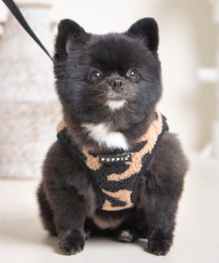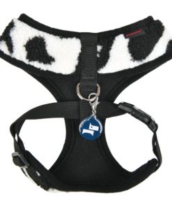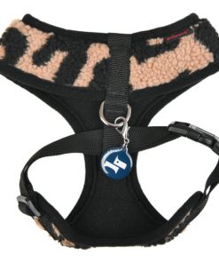Brustgeschirr, schwarz/weiß- und beige-Leo-Plüsch (L, XL)
