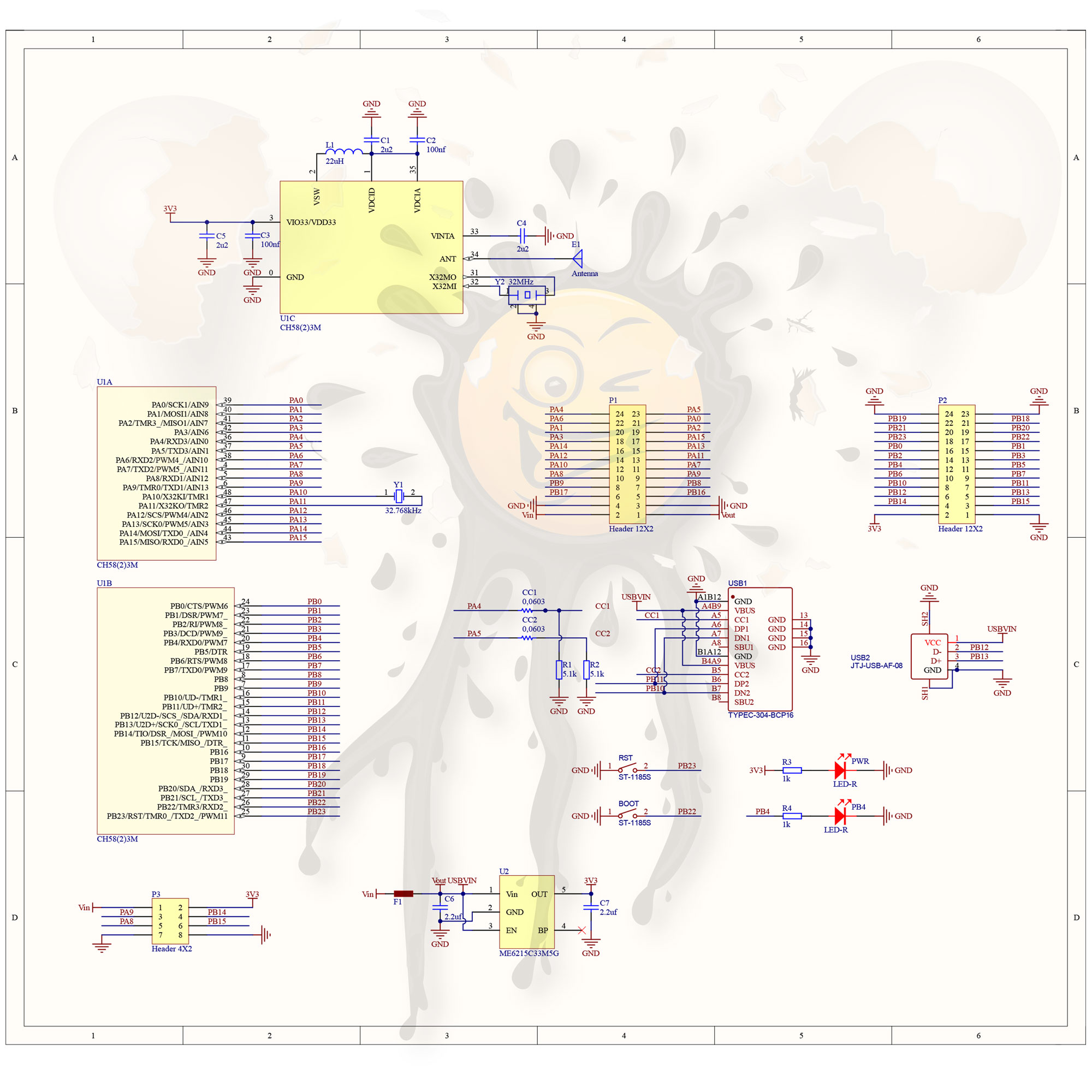 CH582M Bluetooth BLE USB Development Board Schema © androegg