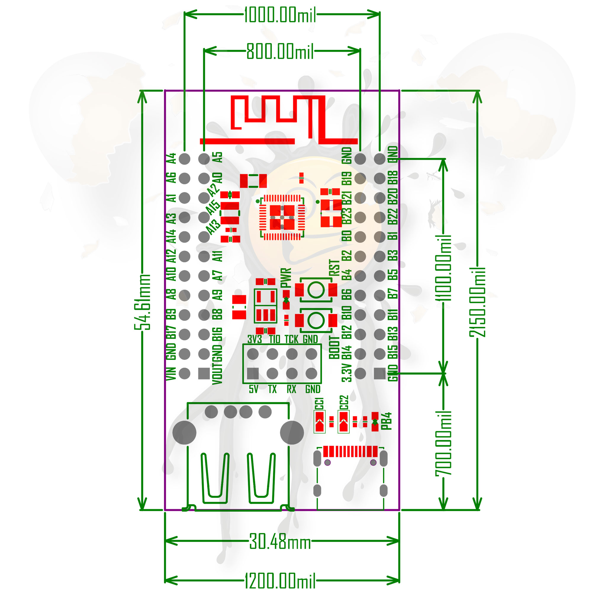 CH582M Bluetooth BLE USB Development Board Dimensions © androegg