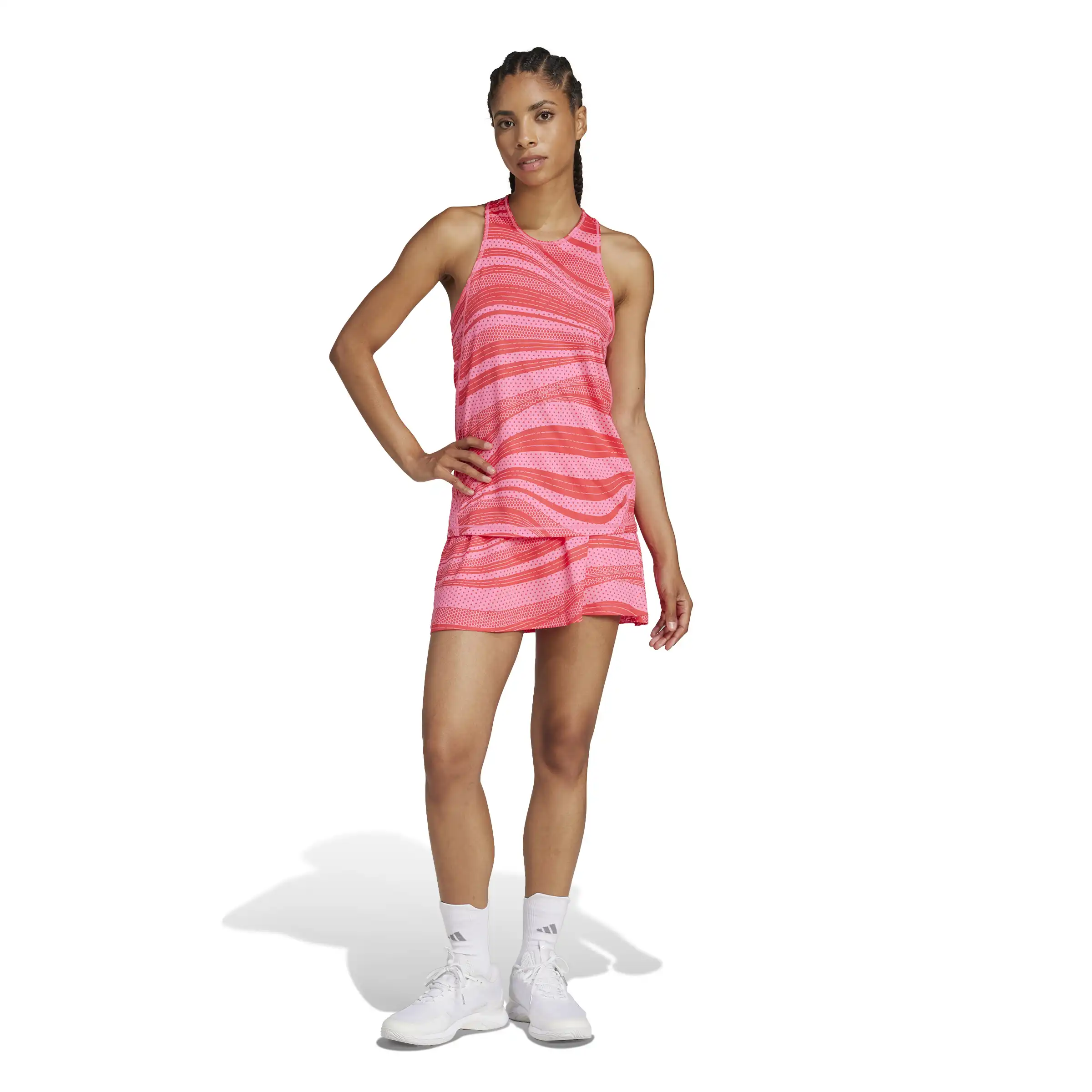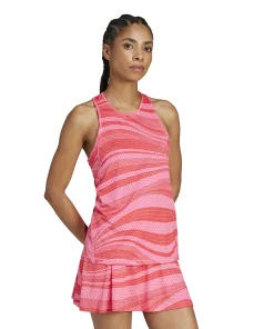 Hol dir angesagten adidas Style für den Court. Dieses Tennis-Tanktop ist Teil der Club Kollektion, die Outfits für alle Spieler_innentypen bereithält, und zieht mit seinem dynamischen Allover-Muster die Blicke auf sich. CLIMACOOL leitet Feuchtigkeit von der Haut ab und sorgt für ein kühles und trockenes Tragegefühl ? keine Ablenkung, nur Performance. Es ist aus weichem, leicht stretchigem Single Jersey und macht jede Bewegung für eine selbstbewusste Performance mit. CLIMACOOL Materialien ermöglichen ein schnelles und effizientes Feuchtigkeitsmanagement. Dank schnell trocknender Fasern fühlst du dich angenehm frisch. Dieses Produkt ist mit mindestens 70 % recycelten Materialien hergestellt. Die Wiederverwendung bereits vorhandener Materialien hilft uns dabei, Müll zu reduzieren, unsere Abhängigkeit von nicht erneuerbaren Ressourcen einzuschränken und den CO2-Fußabdruck unserer Produkte zu verringern.