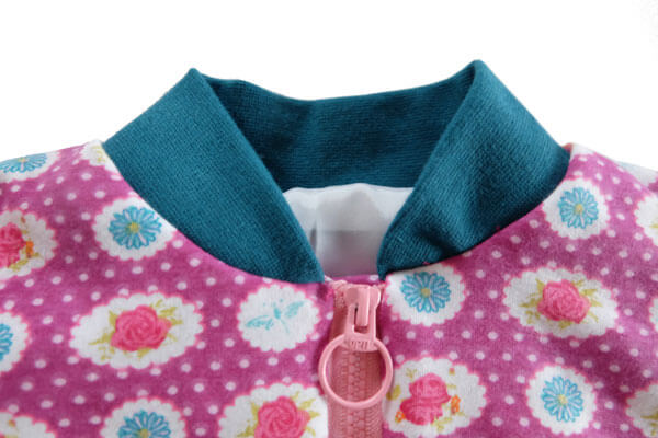 Diese hübsche Kinderjacke / Collegejacke kann grundsätzlich aus allen Stoffen genäht werden. Sie sollten nur weich fallen, sonst “steht” die Jacke unschön von der Silhouette her ab. Das Modell ist nur für Fortgeschrittene zu empfehlen. Für dieses Modell benötigst Du teilbare Reißverschlüsse. Die Länge ist unten angegeben. Empfehlenswert ist für diese Jacke die Verwendung von doppelseitigem Klebeband wie z.B. das Wonder Tape von Prym. Im Ebook erklären wir auch noch, wie man die Jacke ohne Futter und mit Beleg verarbeiten kann. Für Nähanfänger finden wir das Modell “Heaven” besser, dieses gibt es auch bei uns im Shop. Wie toll Du diese Jacke abwandeln kannst siehst Du anhand des Beispiels von Suska von “Schneckenfarm”. So wird aus dem Modell eine stylische Rock Chic Jacke!