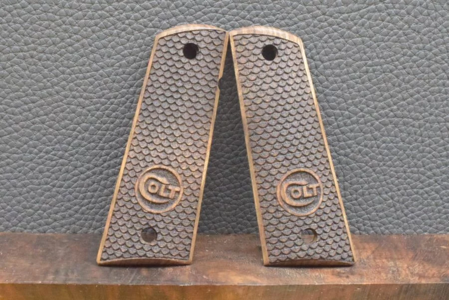 Colt 1911 , Ausführung 6, Fischhaut,Colt Logo, Nußbaum