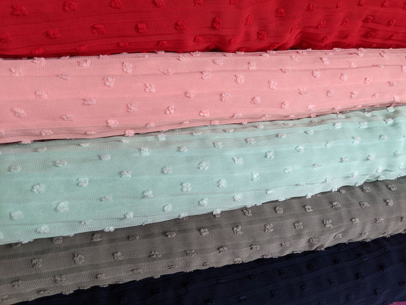 Dieses Material ist mit einem Chiffon zu vergleichen. Der Stoff hat eine Plissee Optik die man aber auch ganz leicht “ausbügeln” kann. Daher ist der Stoff sehr einfach zu verarbeiten. Ideal für Blusen, Kleider, Tücher und vieles mehr. Der Artikel ist nicht blickdicht. Abbildung Schnittmuster Kinderkleid Marie, Olga, Tunika Elisa und Bluse Felia und Margarete.