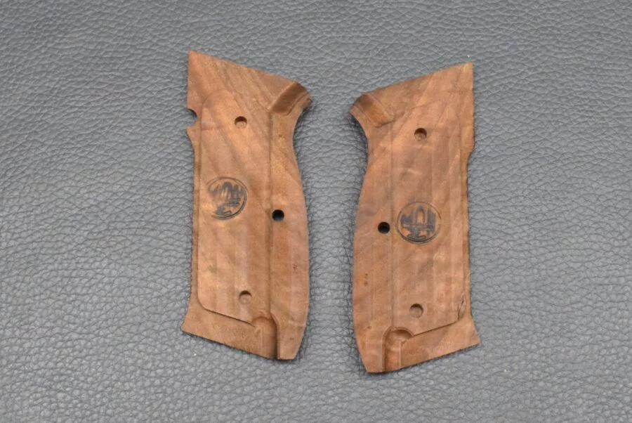 Beretta Mod.92FS, Motiv gestreifte Oberfläche mit PB Logo Messing, Walnuss, Neuware zum Sonderpreis!