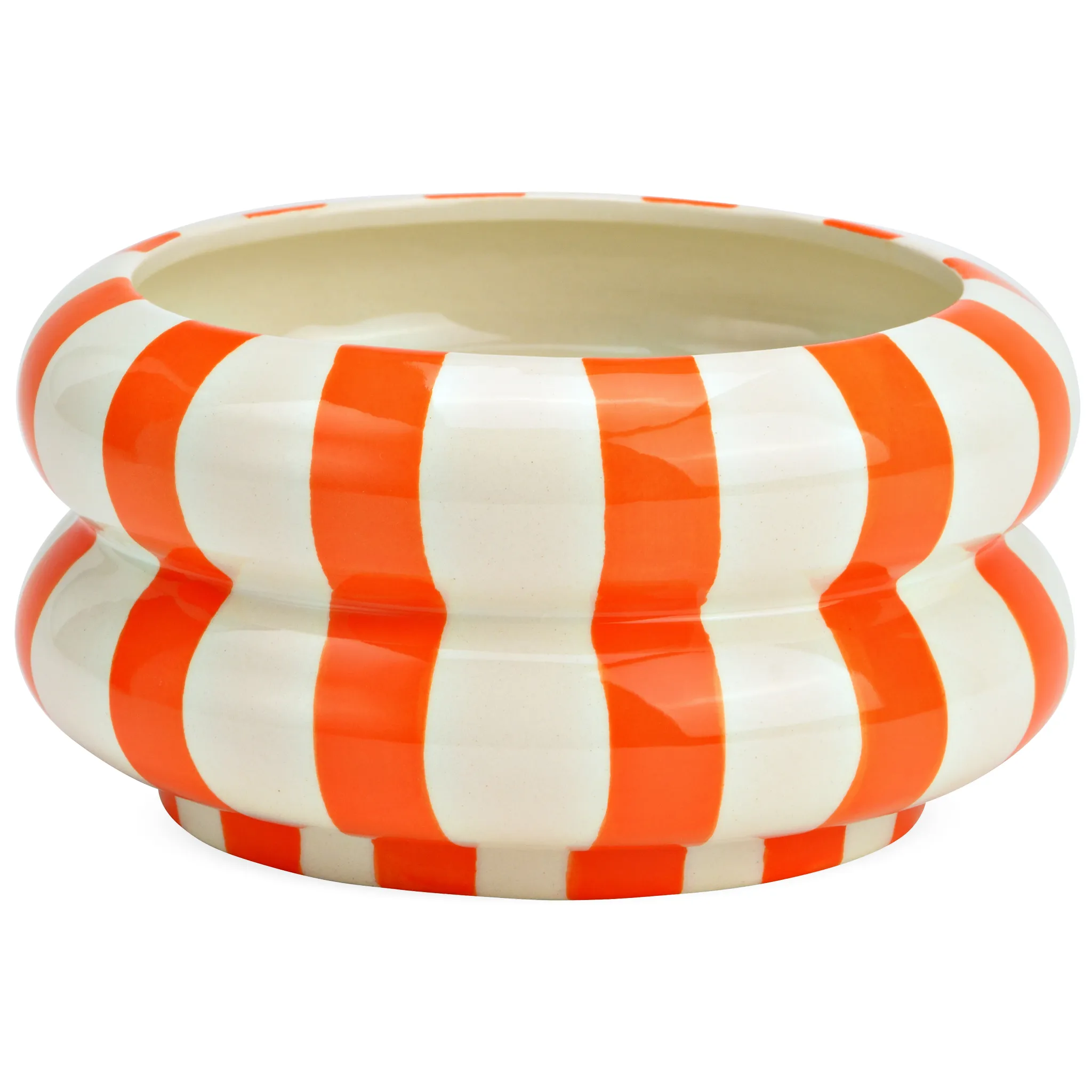 Diese wunderschöne Schale aus hochwertiger Keramik vereint modernes Design mit nostalgischem Charme. Die eleganten Streifen und die einzigartige Form machen sie zu einem vielseitigen Dekoelement für dein Wohnzimmer, den Esstisch oder das Büro.