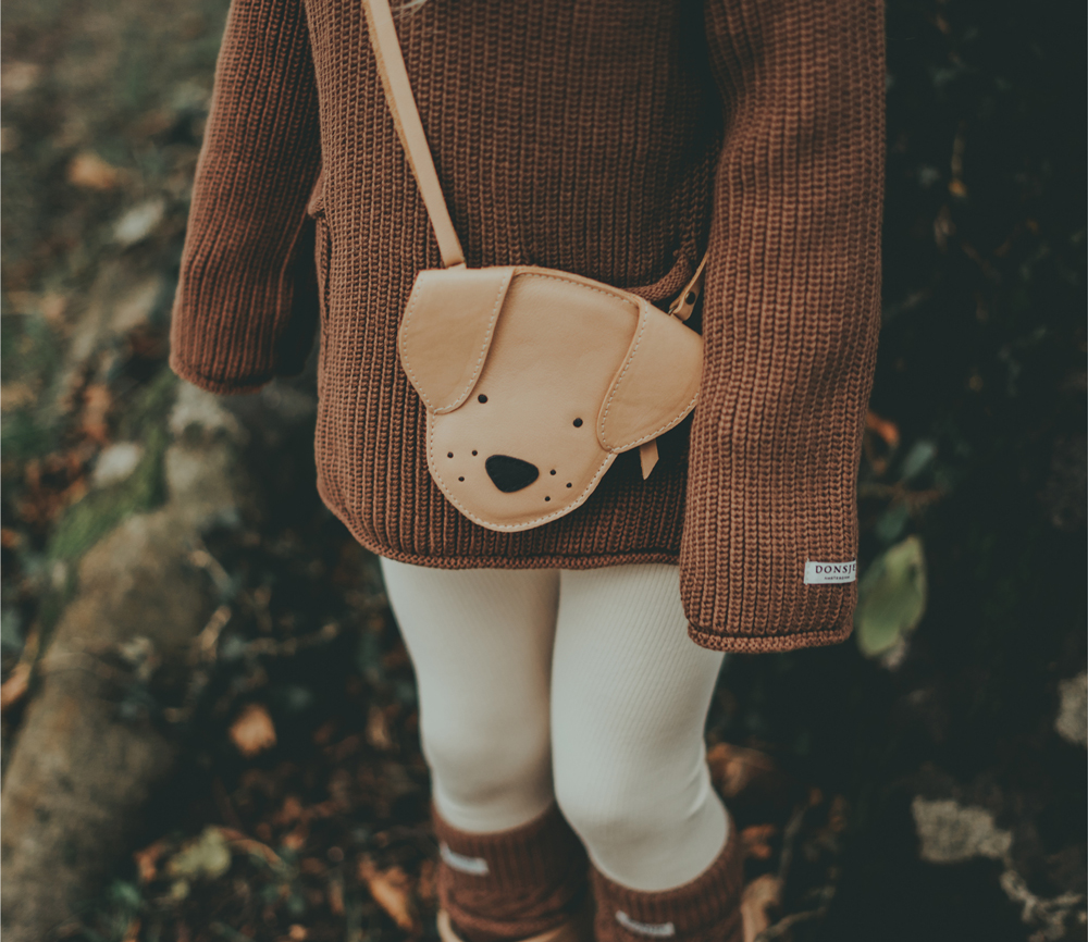 So weich und süß dieser Hund! Öffnen Sie mit dieser entzückenden Umhängetasche die Augen Ihrer Kleinen für die Welt der Accessoires. Es ist aus hochwertigem, fair gehandeltem Leder handgefertigt und mit tierischen Gesichtszügen bestickt, damit das Anziehen Spaß macht. Die Tasche ist mit einem verstellbaren Schultergurt und einem Hauptfach mit Reißverschluss ausgestattet – perfekt zum Verstauen von wertvollen Besitztümern und Schmuckstücken, die sie auf Abenteuern finden.