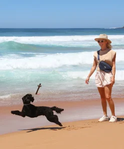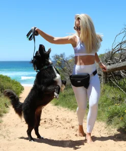 Der Neosport Dog Walking Hüftgurt kann um die Hüfte oder quer über dem Körper getragen werden. Ziehen Sie es an und genießen Sie Ihren Hundespaziergang mit Stil und Komfort.