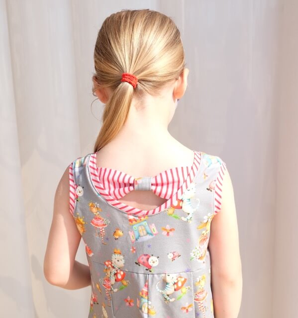 Dieses einfache Sommerkleid mit Raffinesse und einer Schleife am Rücken sieht einfach sensationell aus. Je nach Material bekommt es immer wieder einen anderen Look. Ob maritim oder festlich bestimmst Du durch die Stoffauswahl. Du kannst hier auch wunderbar unterschiedlichen Stoffe oder Designs aus einer Serie miteinander kombinieren bzw. Reste verwerten. Ein tolles Projekt auch für Nähanfänger.