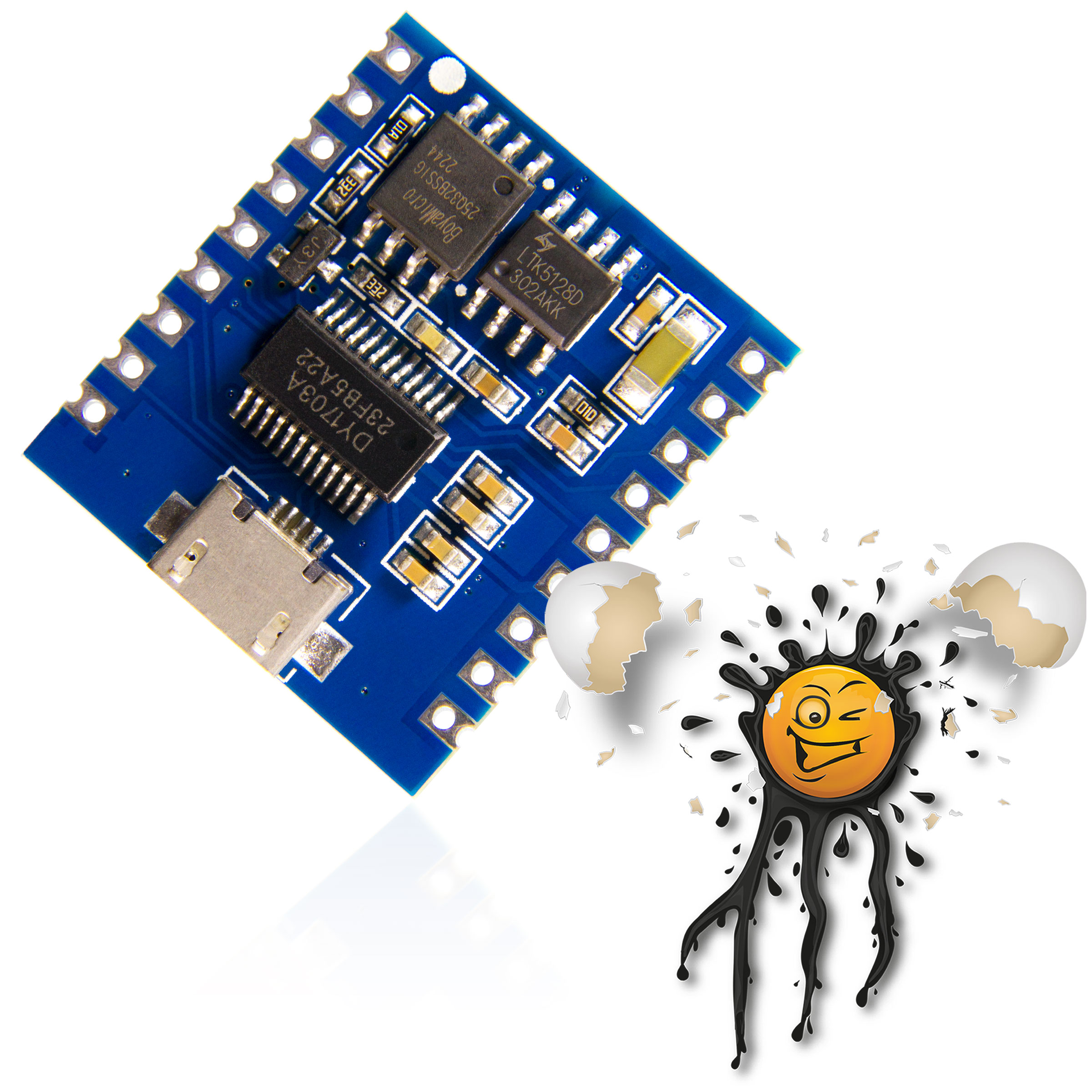 Das DY-5V17F Modul basiert auf dem DY1703A 24-Bit Audio Interface IC in Kombination mit dem LTK5128 5W Audio Verstärker IC und einem 4MB SOP8 Flash Speicher.