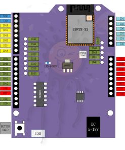 ESP32-S3 UNO Development Board based on ESP32-S3 N16R8 MCU with 8MB PSRAM and 16MB SPI Flash.