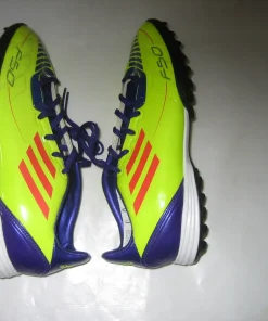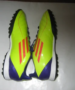 Der Adidas Herrenfußballschuh F 10 TRX TF hat Multinocken und ist gelb/lila.