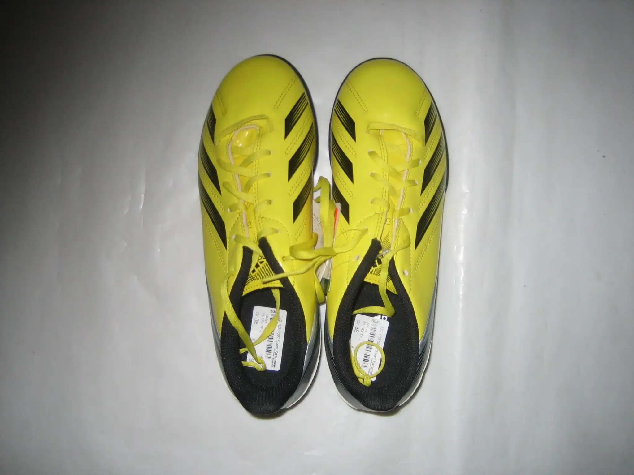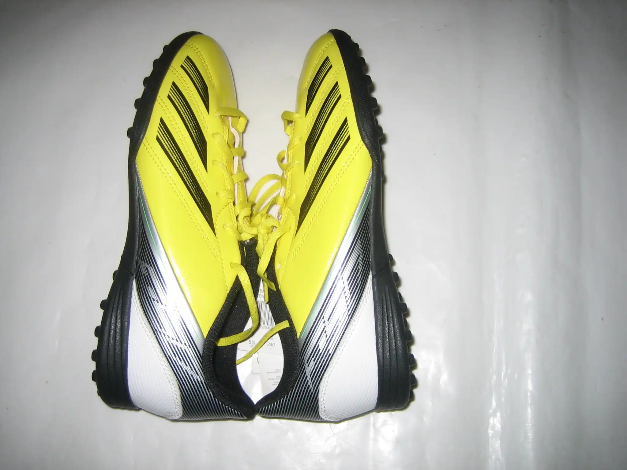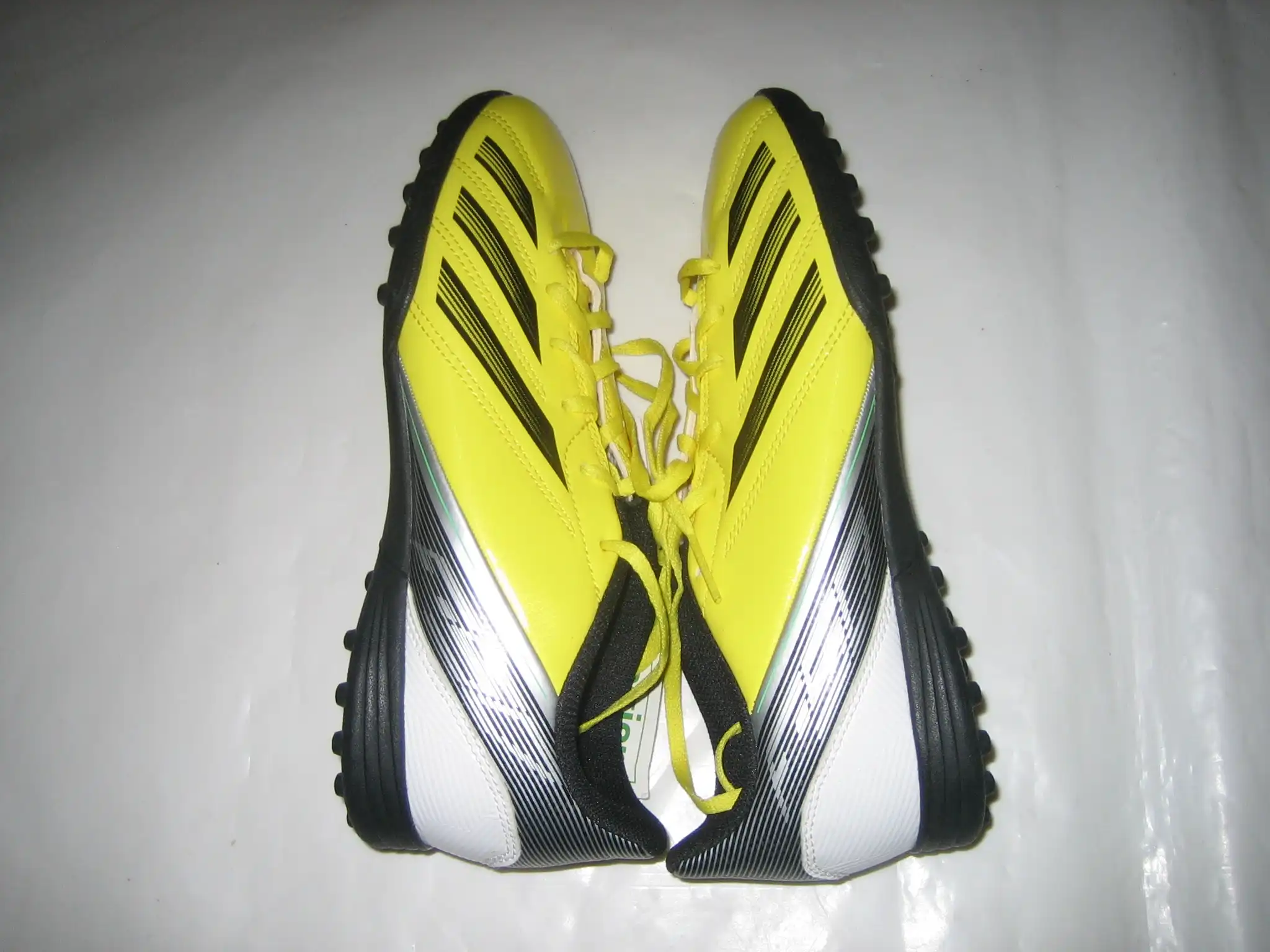 Der Adidas F5 TRX TF J ist in gelb schwarz grau weiß für Kunstrasen.