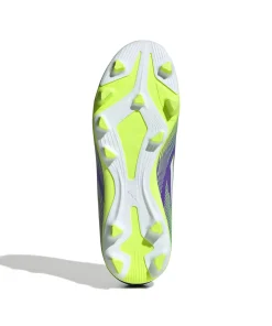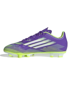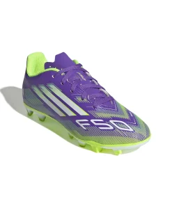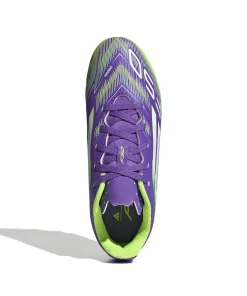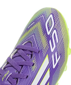 Zeig auf dem Platz, wer du bist. Spür den Kick mit dem adidas F50 Fußballschuh für ultimativen Speed. Die Club-Version für Kinder und Teens mit leichtem Synthetik-Obermaterial und perforierter Zunge für hohen Tragekomfort und Beweglichkeit. Auf der Unterseite findest du eine Außensohle, die schnelles Spiel auf festen Böden und Kunstrasen unterstützt.