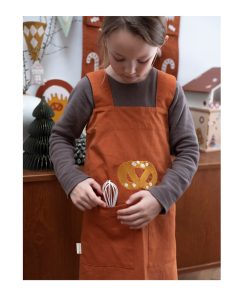 Lass uns Plätzchen backen! Mit der zimtfarbenen Kinderschürze „Bretzel Cinnamon“ aus Bio-Baumwolle mit Brezelstickerei von Fabelab macht gemeinsames Backen noch mehr Spaß. Die Schürze hat zwei große Fronttaschen zur Aufbewahrung aller Arten von Küchenutensilien. Weihnachtsduft liegt in der Luft – feiner Duft von Zimt, Schokolade und Freude!
