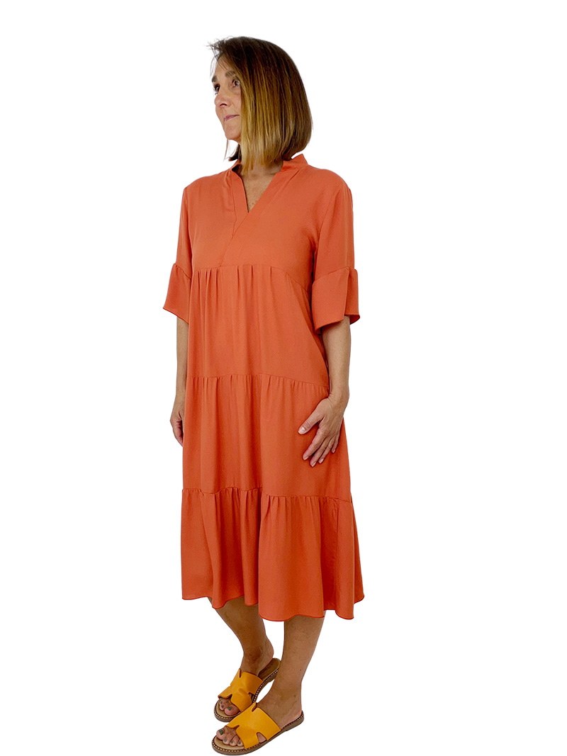 Dieser Viskosestoff ist durch die Webart leicht dehnbar, ist leicht fallend und hat eine tolle Haptik. Diese Qualität ist pflegeleicht, knitterarm und bietet einen hohen Tragekomfort. Der Stoff eignet sie sich toll für leichte Sommerhosen, Tunikas, Hemden, Kleider, Röcke und vieles mehr. Abbildung Schnittmuster Francesca von Zierstoff und aus der Fibre Mood Nr. 15 Modell Vikki. Achtung, dieser Stoff ist nur in 0,5 Meter Einheiten zu kaufen. Natürlich werden alle gekauften Einheiten am Stück geliefert.