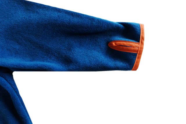 Diese unisex Fleecejacke ist nicht nur bequem und kuschelig, sondern auch noch überaus praktisch. Die gerade und leger geschnittene Jacke ist ein idealer Begleiter für den Frühling und Herbst. Ein dicker Pullover passt auf jeden Fall auch noch darunter. Die Kapuze und das obere Vorderteil sind mit einem leichten Baumwollstoff für die Optik gefüttert. Der Schnitt ist absolut anfängertauglich. Natürlich kannst Du das Modell auch aus Jersey nähen, dann fällt es aber etwas anders als aus dickeren Fleece Stoffen. Wer kreativ ist kann den Schnitt abwandeln und eine Jacke daraus nähen, siehe das hübsche Beispiel in Senffarbenen Waffelstoff.