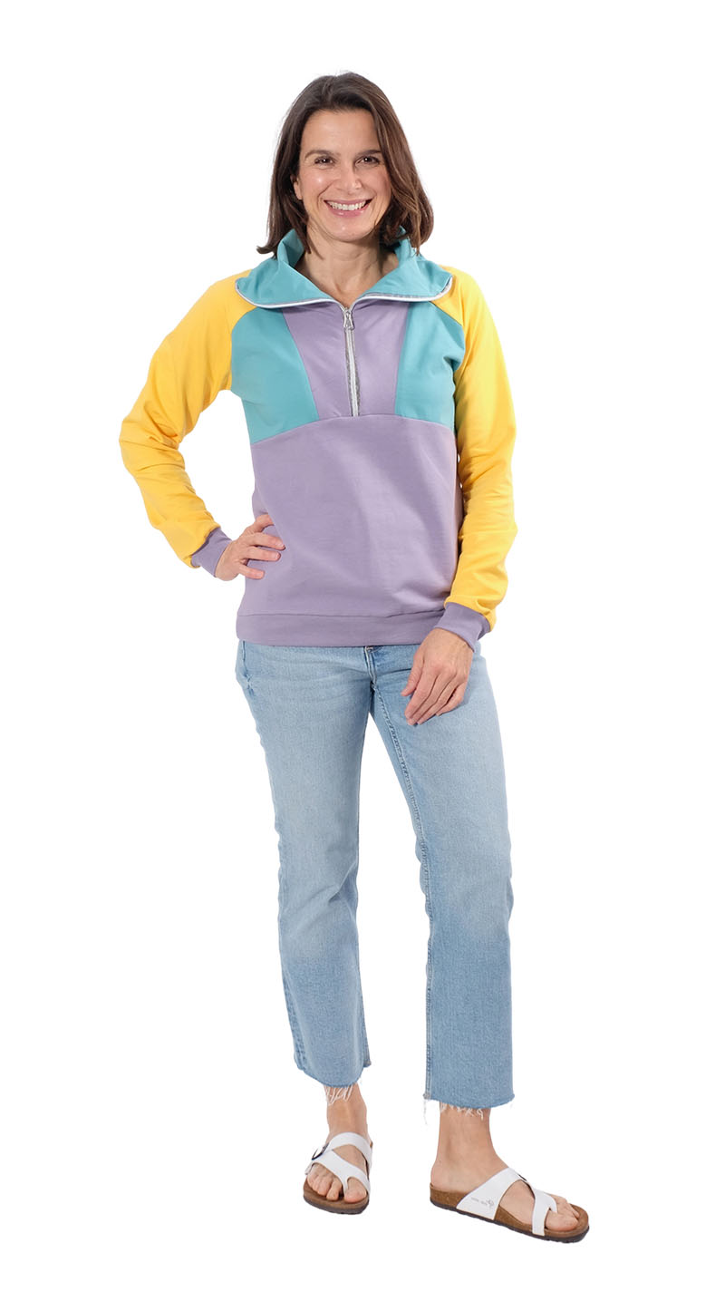 “French Terry” Sweatshirt Stoff aus Baumwolle/Elasthan. Dieser Sweatshirt Stoff ist etwas dicker und als der unifarbene “Single Knit” Jerseystoff. Daher finden wir diese Qualität für Anfänger auch einfacher zu nähen. Du kannst aus diesen Stoff sehr schöne Mützen, Shirts, Kleider, Sweatshirts, Pumphosen und Jogginghosen nähen. Auch für Leggings in der Winterzeit sehr gut geeignet. Der Stoff sieht von außen aus wie ein normaler Jersey, innen ist die typische Schlingenstruktur sichtbar.