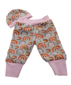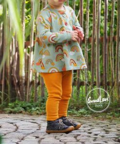 Ein hochwertiger Sommer Sweat Stoff aus Baumwolle/Elasthan mit Regenbogen bedruckt. Ideal für Mützen, Schals, Oberteile, Jacken, Kleider, Röcke und vieles mehr. Abbildung Schnittmuster Maxi und Wickelshirt Jolanda.