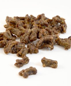 Natürlicher Monoproteinsnack aus reinem Rindfleisch in Knöchelchen-Form mit dem Gütesiegel des Hundeprofis Martin Rütter.