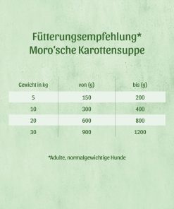 Die Moro’sche Karottensuppe ist ein bewährtes Hausmittel für Hunde mit Magen-Darm-Problemen wie akute Durchfallerkrankungen, Erbrechen oder Verdauungsstörungen. Die Suppe wird aus Karotten, Wasser und etwas Meersalz hergestellt.