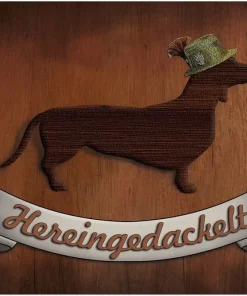 - Fußmatten / Türmatten mit Motiv: Hereingedackelt – Dackel mit Tirolerhut – braun