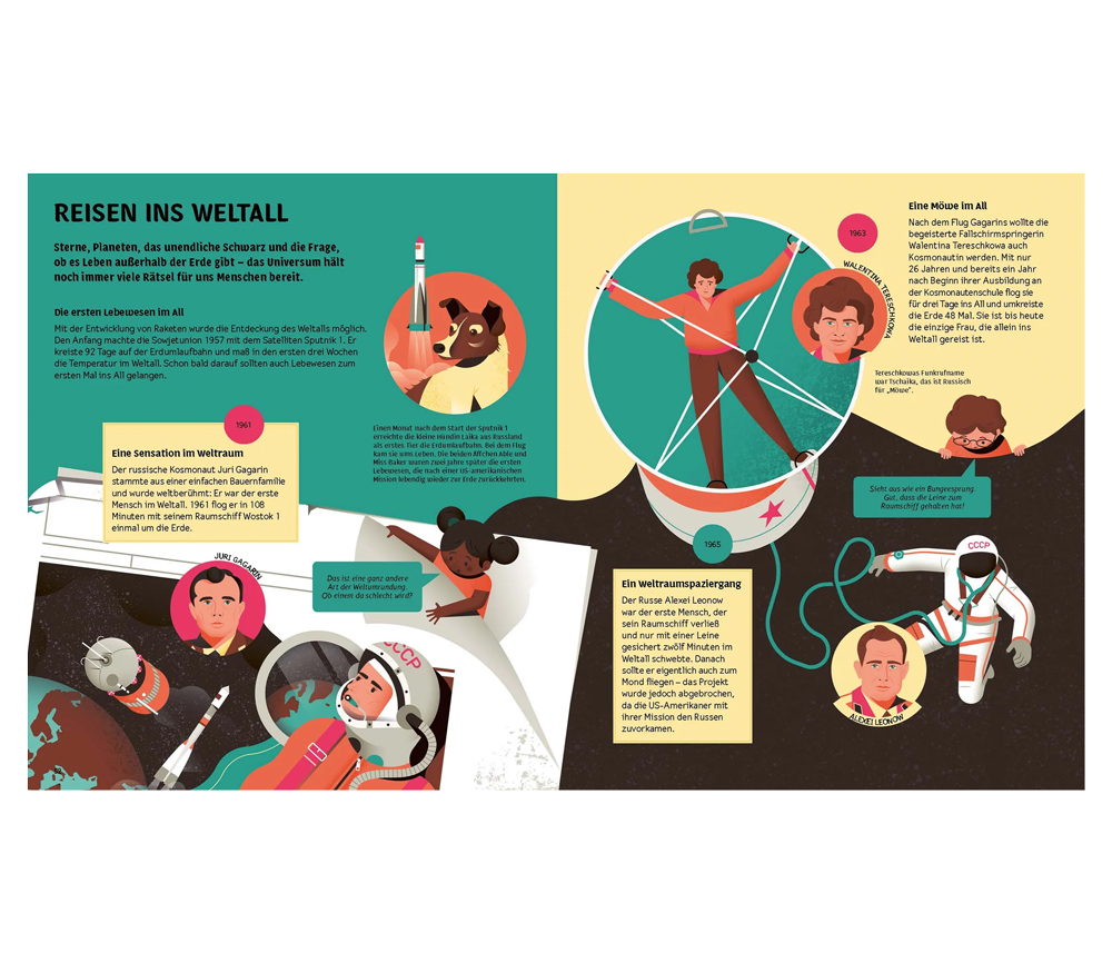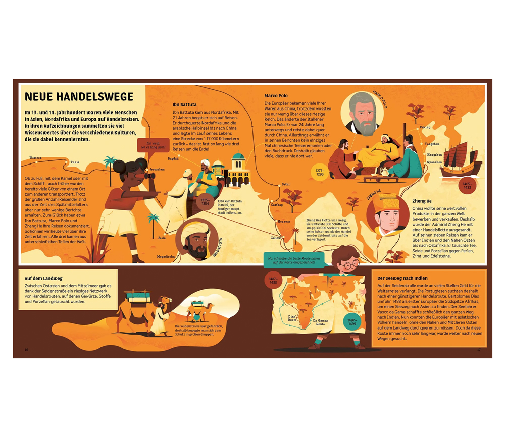 Segelt mit den Wikingern, trefft die Sherpas, die den Mount Everest bestiegen haben und lernt die Astronauten kennen, die sich über die Grenzen der Erde hinaus bis in den Weltraum gewagt haben. Entdecke die Welt wirft ein Licht auf die Menschen, die diese Abenteuer mit ihren Landes- und Sprachkenntnissen überhaupt erst möglich gemacht haben und erzählt Geschichten von Mut und Neugier.