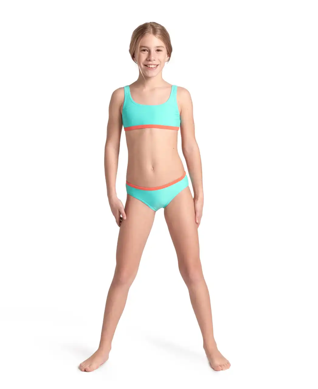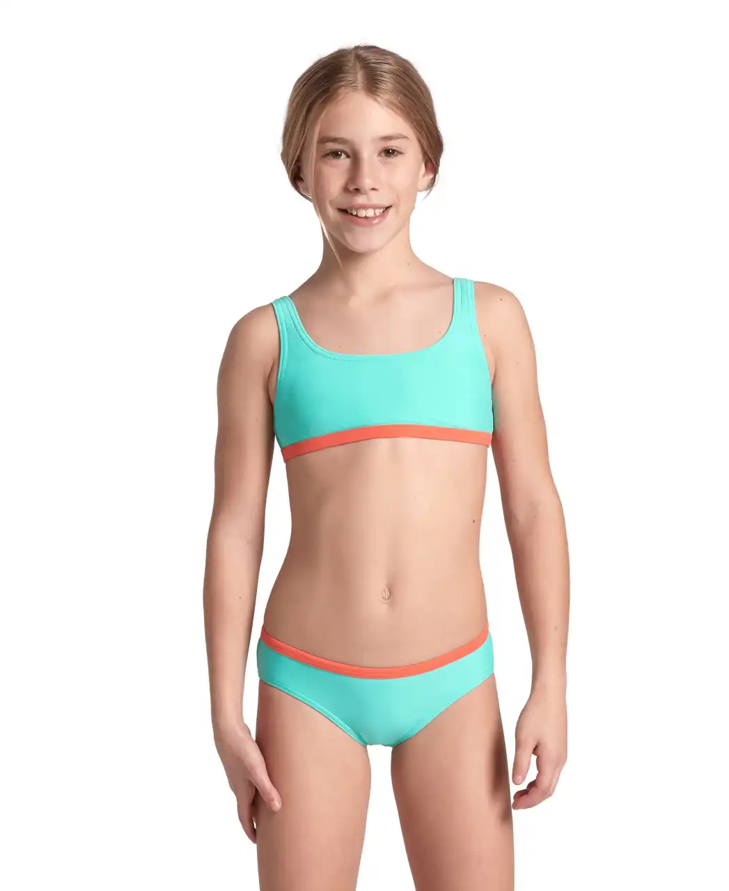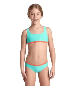 Geniesse das Wasser in diesem sportlichen und äußerst bequemen arena Mädchen Essentials Bralette Bikini der arena's Herkunft feiert und die unverwechselbaren Designmerkmale der Marke wieder aufleben lässt. Entworfen für alle, die einen sportlichen Look und höchsten Tragekomfort lieben, um jeden Moment im und am Wasser zu geniessen. Äußerst bequemes Oberteil mit breiten Trägern für sicheren Halt. Hergestellt aus umweltfreundlichem, schnelltrocknenden und weichem Stretchmaterial. Der Elastananteil garantiert eine optimale Passform und erleichtert das schnelle An- und Ausziehen des Bikinis. Komplett gefüttert für höchsten Tragekomfort und optimale Blickdichte. Der OEKO-TEX® STANDARD 100 des Materials bedeutet, dass es getestet wurde auf schädliche Substanzen und dass das Produkt unschädlich für die menschliche Gesundheit und die Umwelt ist.