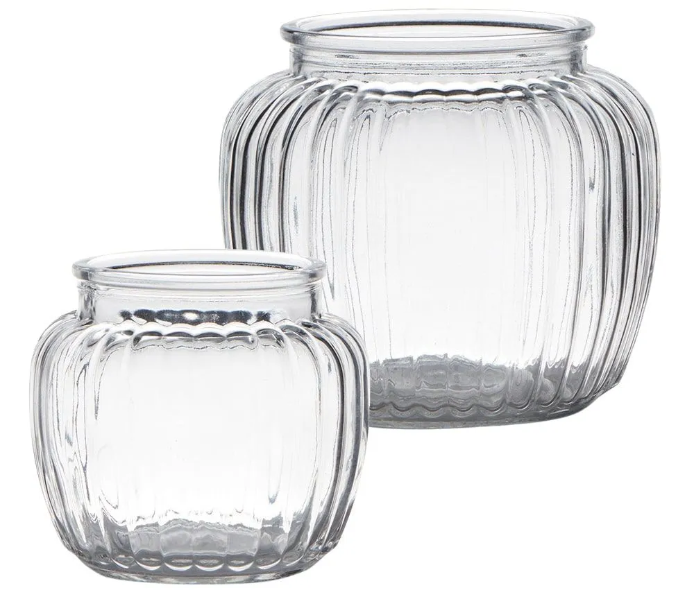 Glasvasen Blumenvasen Dekovasen bauchig Rillen Struktur klar 1 Stk – 2 Größen