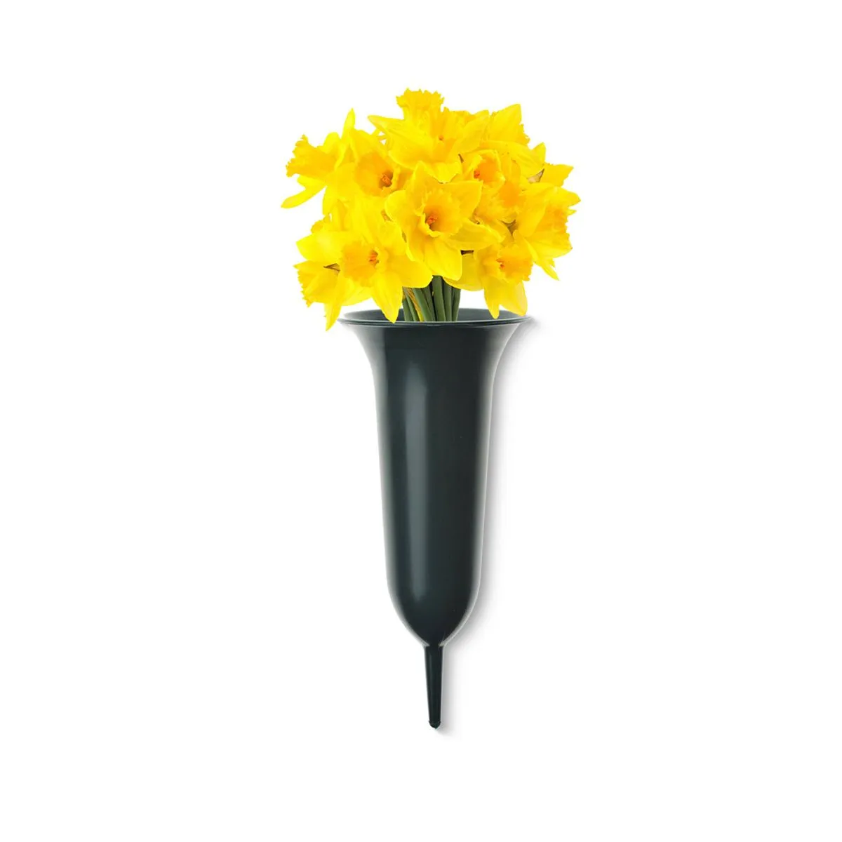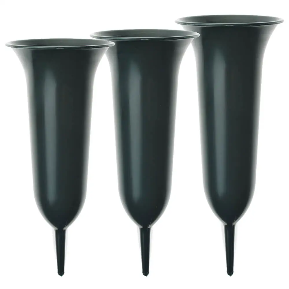 matches21 wetterfeste Grabvasen mit Erdspieß als Grabschmuck – Grüne Friedhofsvasen aus Kunststoff zum Stecken – Friedhof Grab Steckvasen in 3 Größen für Blumen Gesteck Blumensträuße