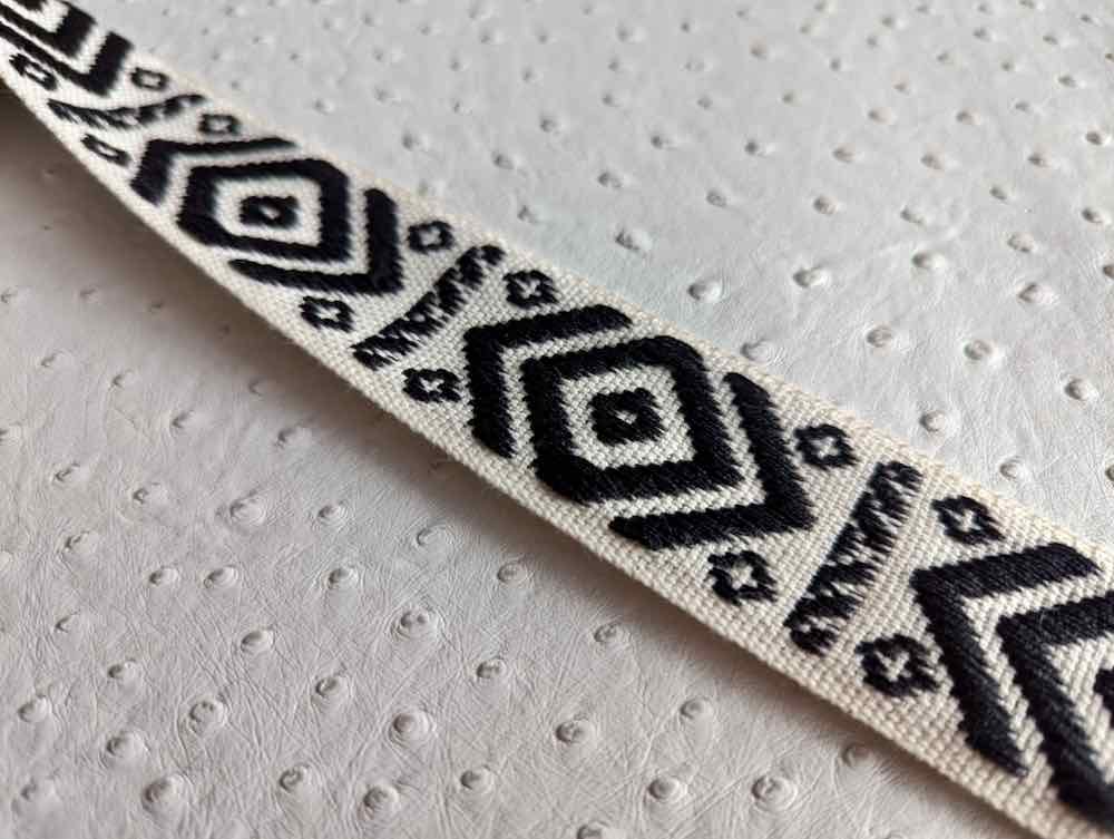 Dieses Band kann man für Taschen als Gurtband verwenden. Dieses Band ist fest gewebt, 40 mm breit – 1 Meter Länge. Ideal als Zierband um auf festen Materialien zu nähen oder als Tragegurt für Taschen.