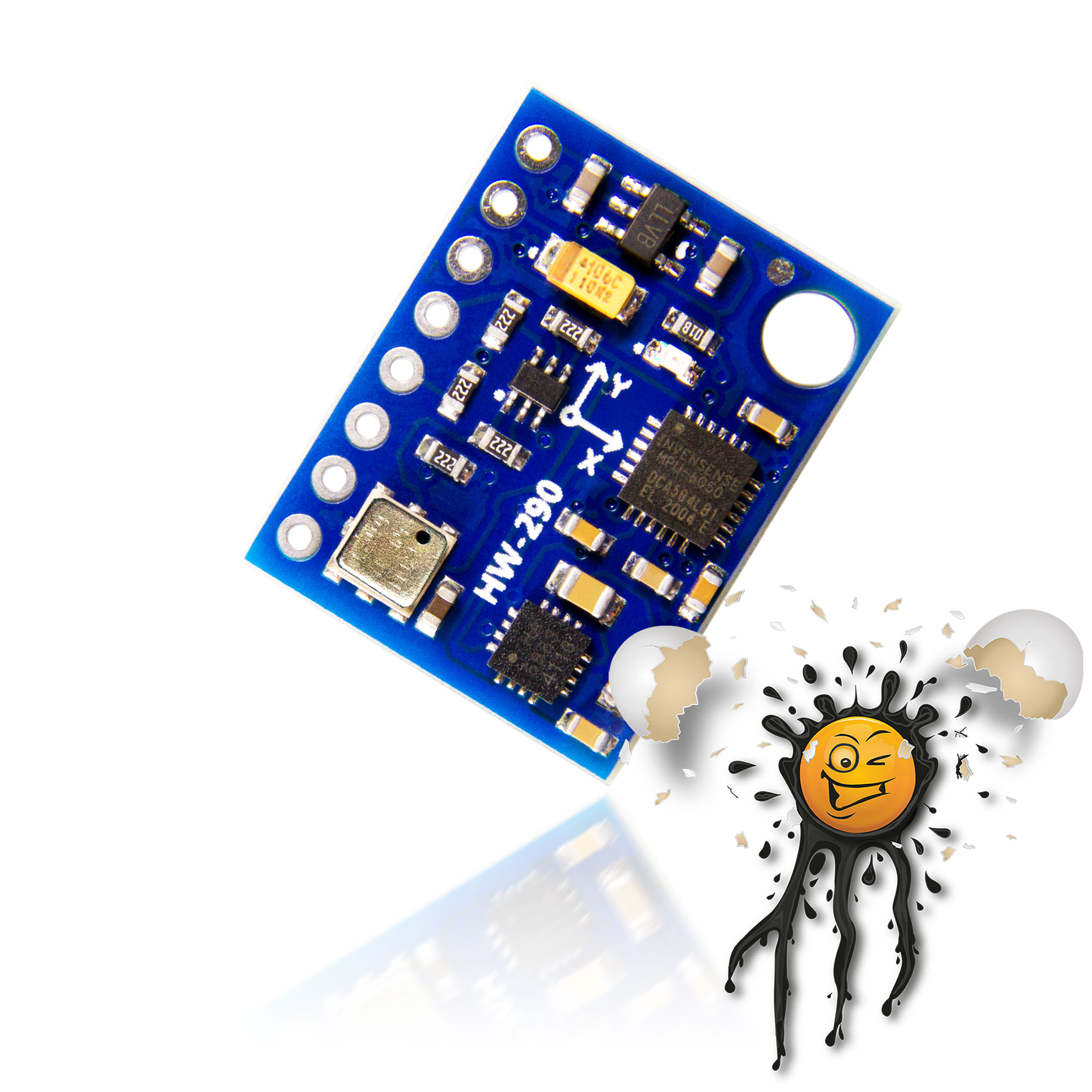 Der MPU6050 Sensor erfüllt die typischen Anforderungen eines Gyroskop in Kombination mit einem Beschleunigungs-sensor. Der MPU6050 Sensor verfügt über einen 16-Bit- AD Wandler und erlaubt die Erfassung von