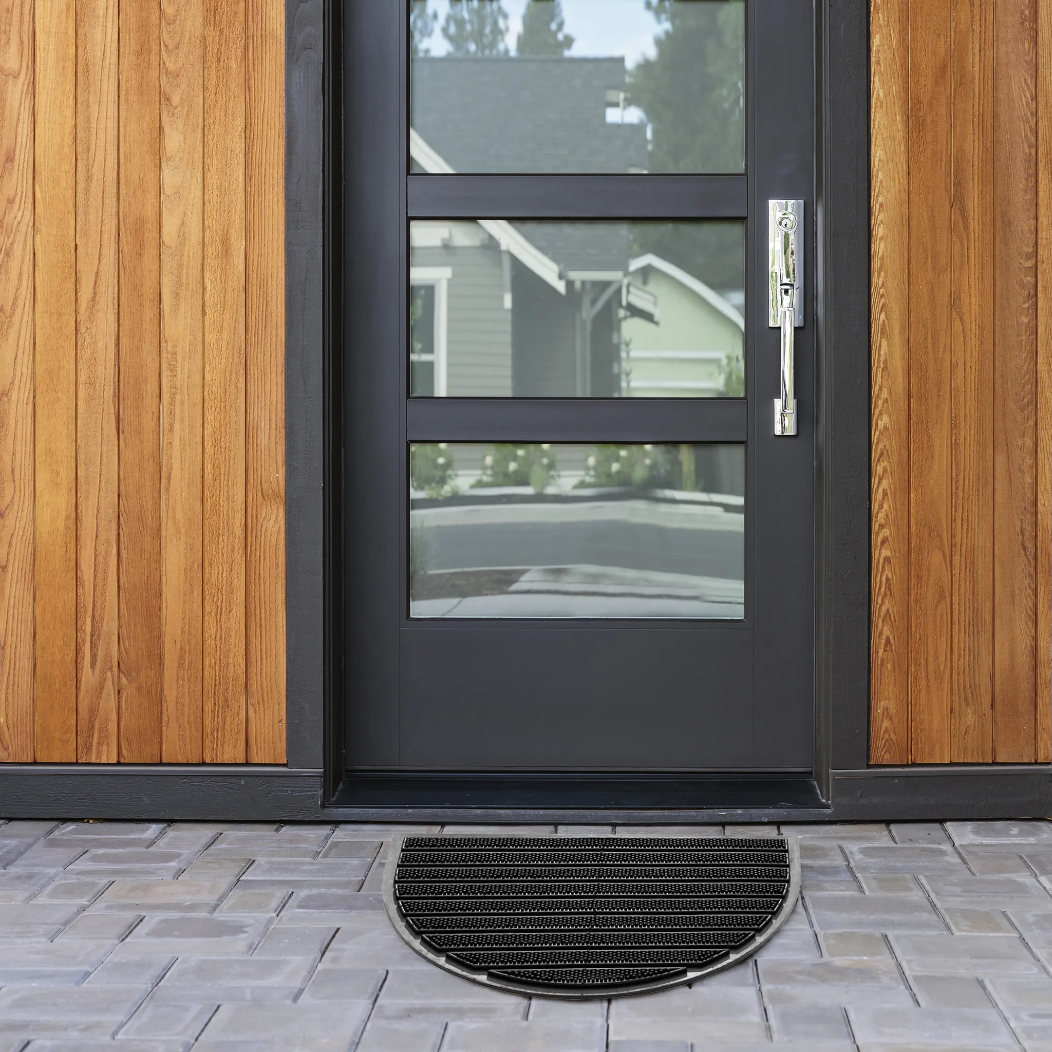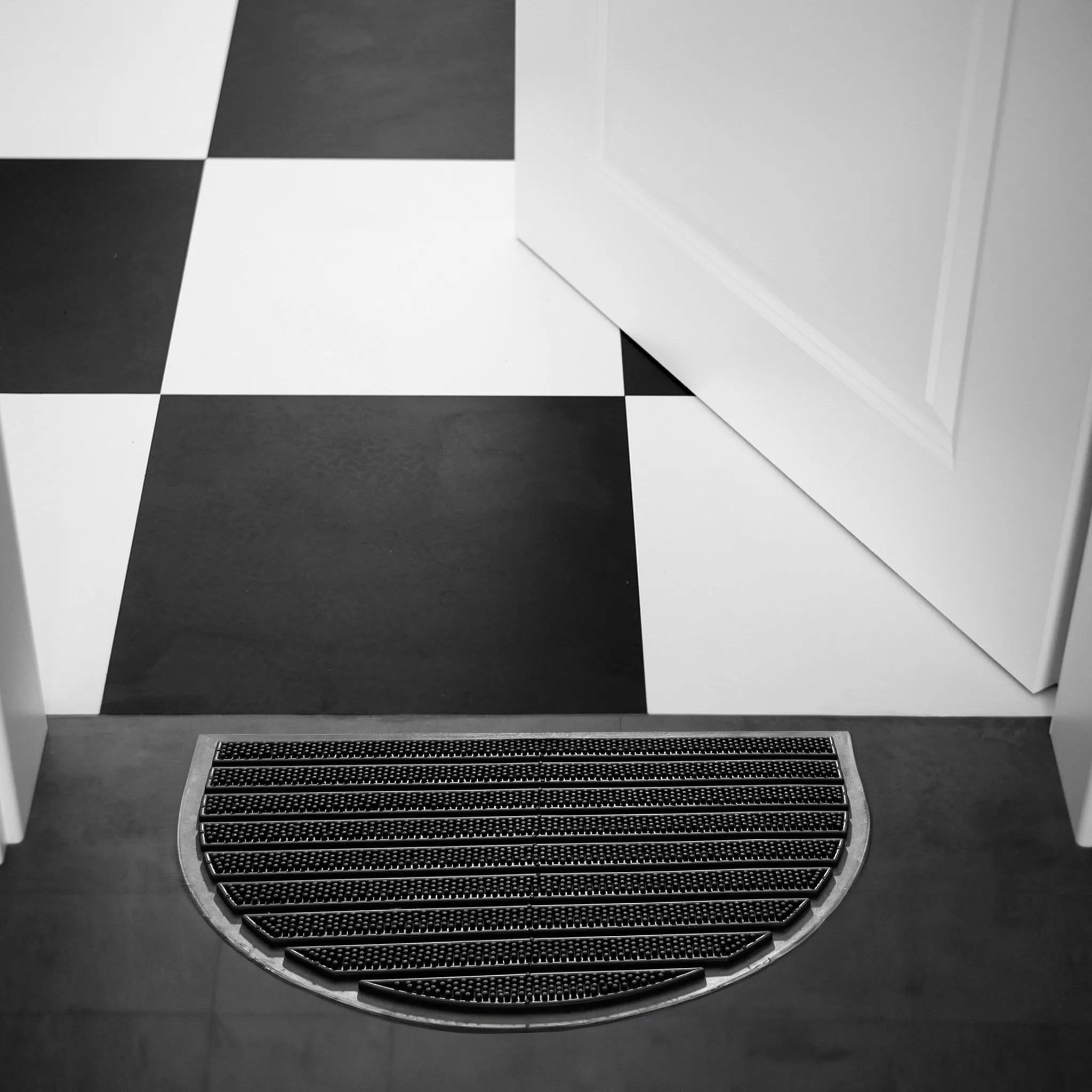 - Outdoor Fußmatte aus Gummi mit Noppen. In unaufdringlichem Design. Witterungsbeständig und rutschhemmend.