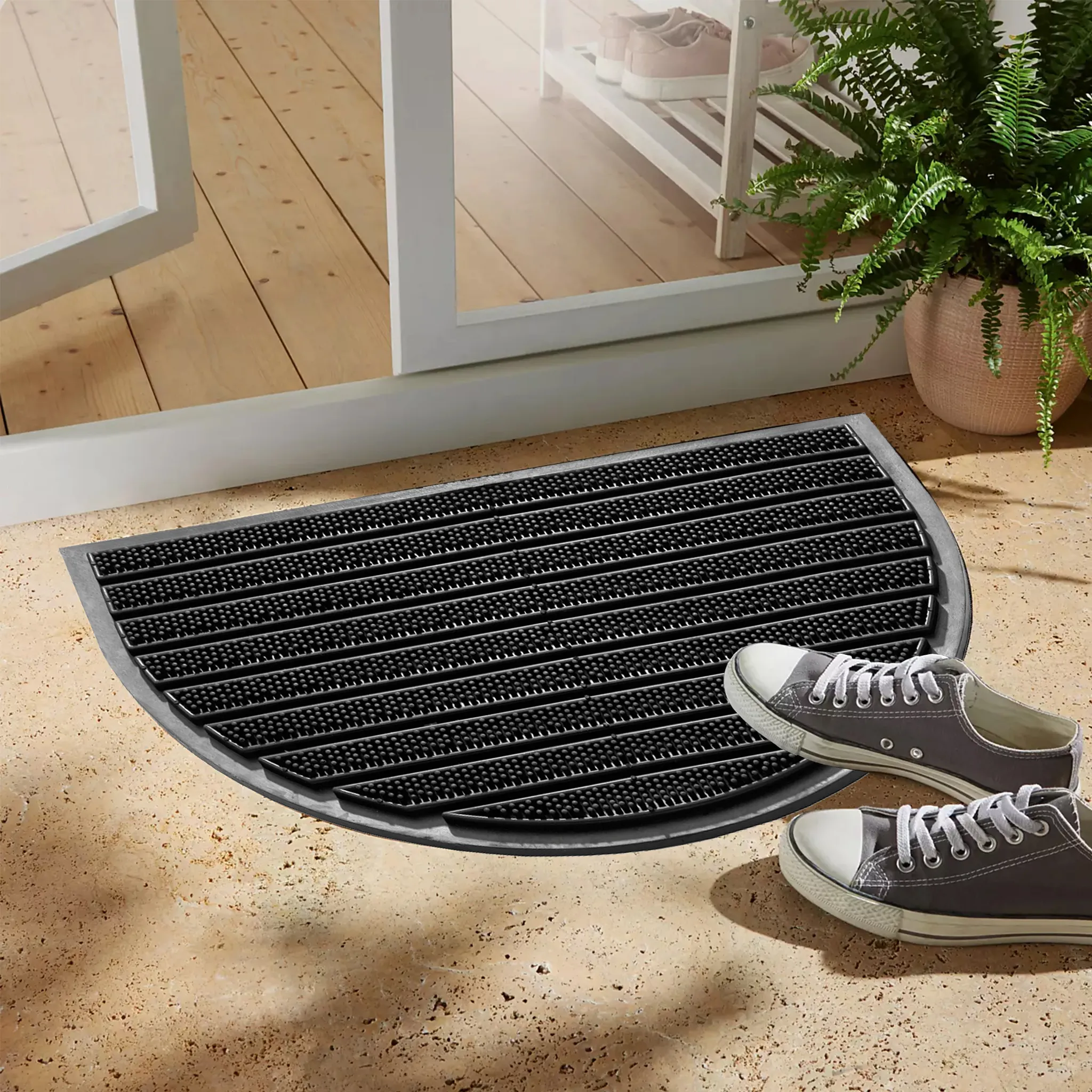 matches21 Fußmatte Fußabstreifer Gummi Türmatte OUTDOOR rutschfest & wetterfest Gummimatte schwarz halbrund 40×60 cm