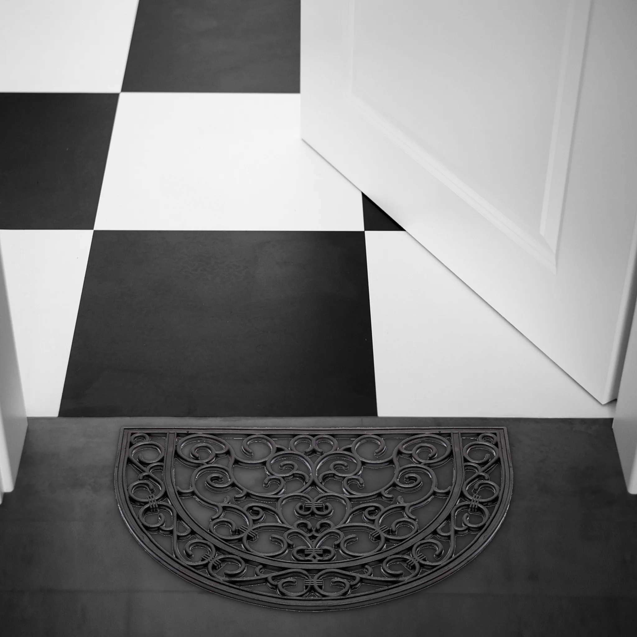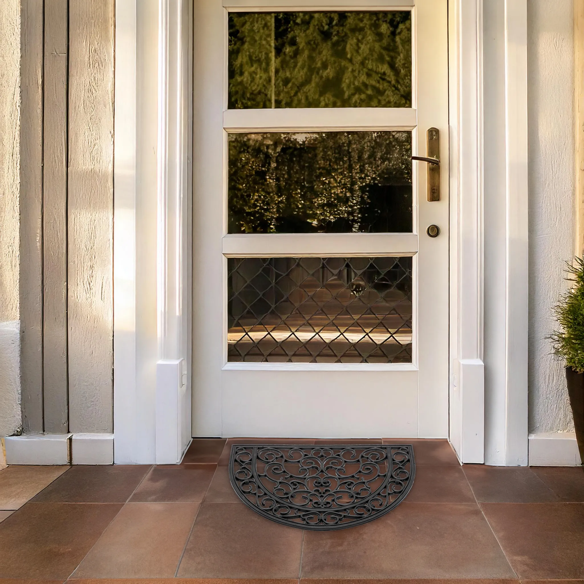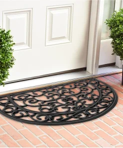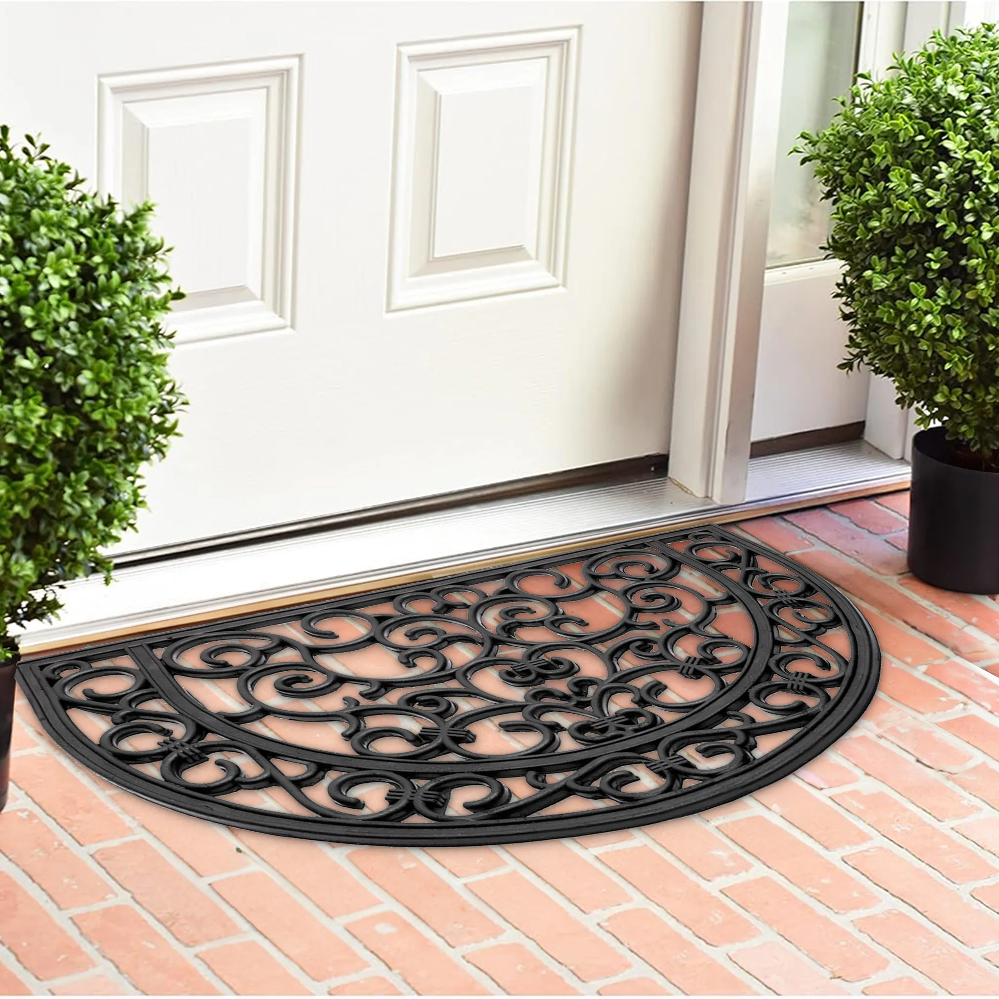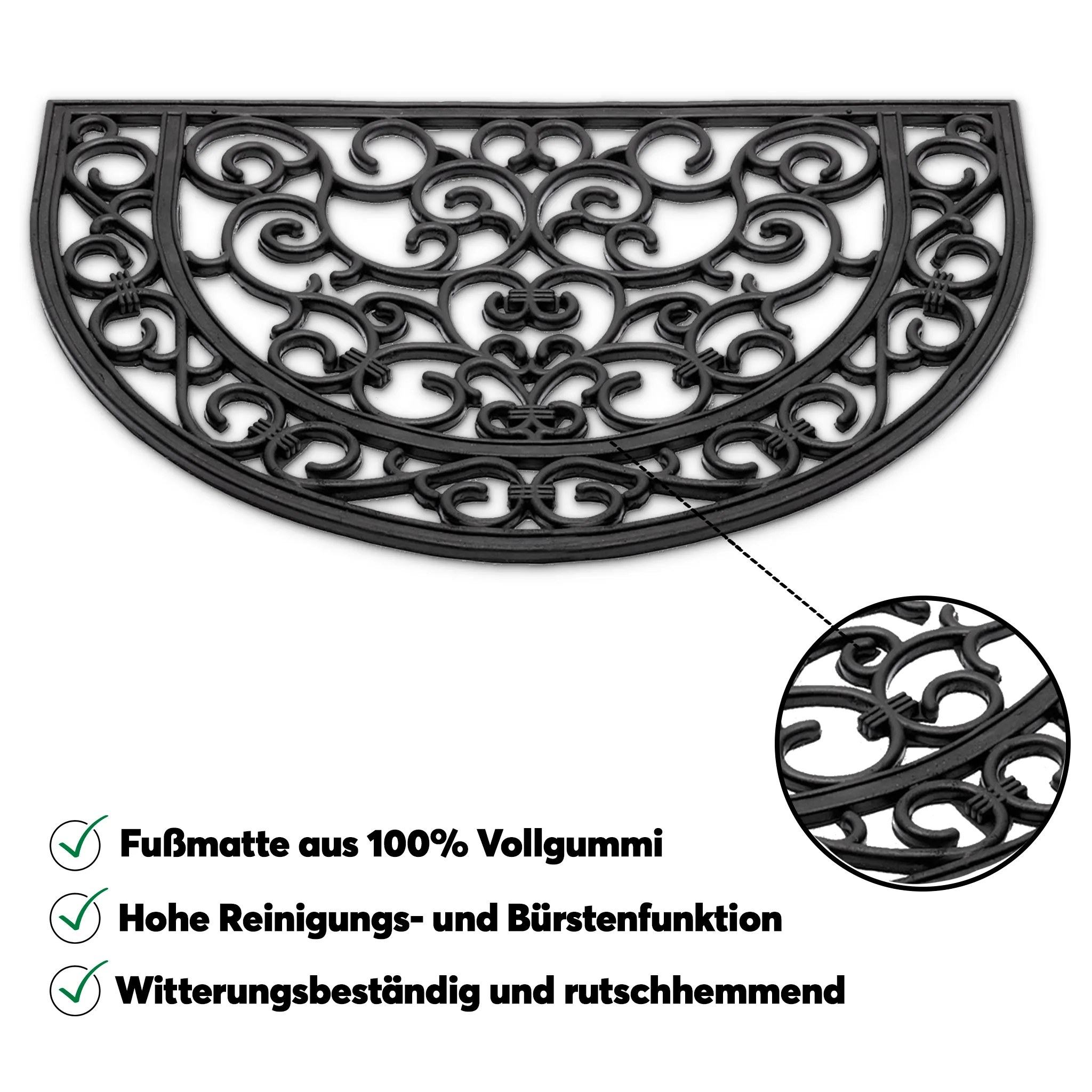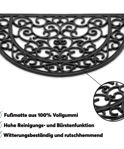 matches21 Fußmatte Fußabstreifer Gummi Türmatte OUTDOOR Gusseisenoptik mit floralen Ornamenten halbrund 40×60 cm